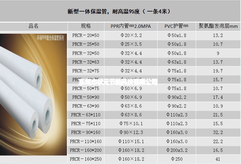 狀元PPR聚氨酯保溫管的內芯管采用優質PPR=2.0Mpa熱水管,保證過熱水管道質量穩定;外管采用PVC硬管,具有抗沖擊,抗壓,保證管材在運輸、安裝和使用過程中免受破壞;中間層是采用優質聚氨酯成型的保溫層,保溫層緊密粘附內外管并充分填滿之間空隙,使管道、外套及保溫層三者形成一個牢固的整體,保溫效果極佳,聚氨酯發泡保溫層的厚度也可根據客戶要求定制。