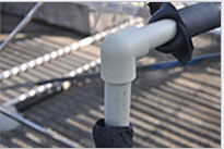 3普通保溫管用橡塑棉或PEF棉包扎或扎帶困綁,一、二年后老化,保溫層萎縮破裂,斷開,內管外露,內管不抗紫外線加速老化。